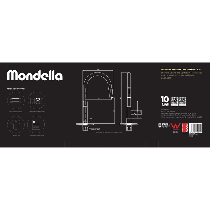 Mondella Rococo Pull Down Sink Mixer Brushed Nickel WELS 5 Star 6L/min